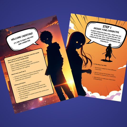 Design a hero who saves the day or a villain with clever plans. Develop traits, backstories, and adventures!